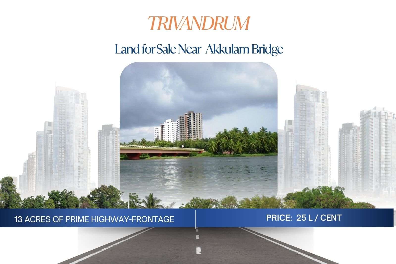 13 acres land for sale Trivandrum, NH 66 frontage land Trivandrum, Chakkai land for sale, Akkulam Bridge property, commercial land Thiruvananthapuram, highway frontage land Kerala, land near Technopark for sale, land near Trivandrum airport, large land parcel Trivandrum, investment property Kerala, prime land NH 66 Kerala, Trivandrum real estate investment, land near Lulu Mall Trivandrum, IT park development land Kerala, mixed use land Trivandrum, commercial plot NH66 Kerala, premium land for developers Trivandrum